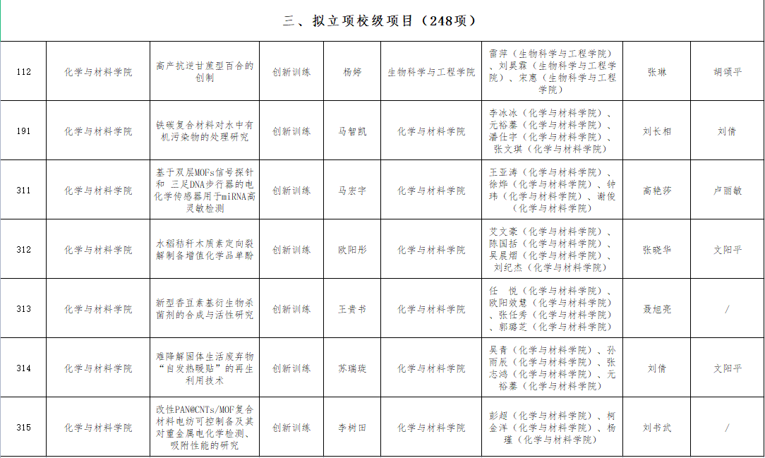 2023年4月8日,学校公布了2023年大学生创新创业训练计划项目评审结果,学校评审出国家级项目35项,省级项目70项,校级项目248项。WilliamHill官网共有18个项目参与申报,11个项目获得立项,其中,国家级2项,省级2项和校级7项。卢丽敏和付凌老师获得国家级立项,熊万明和龚霞老师获得省级立项,张琳、刘长相、高艳莎、张晓华、聂旭亮、刘倩和刘书武7位老师获得校级立项。
