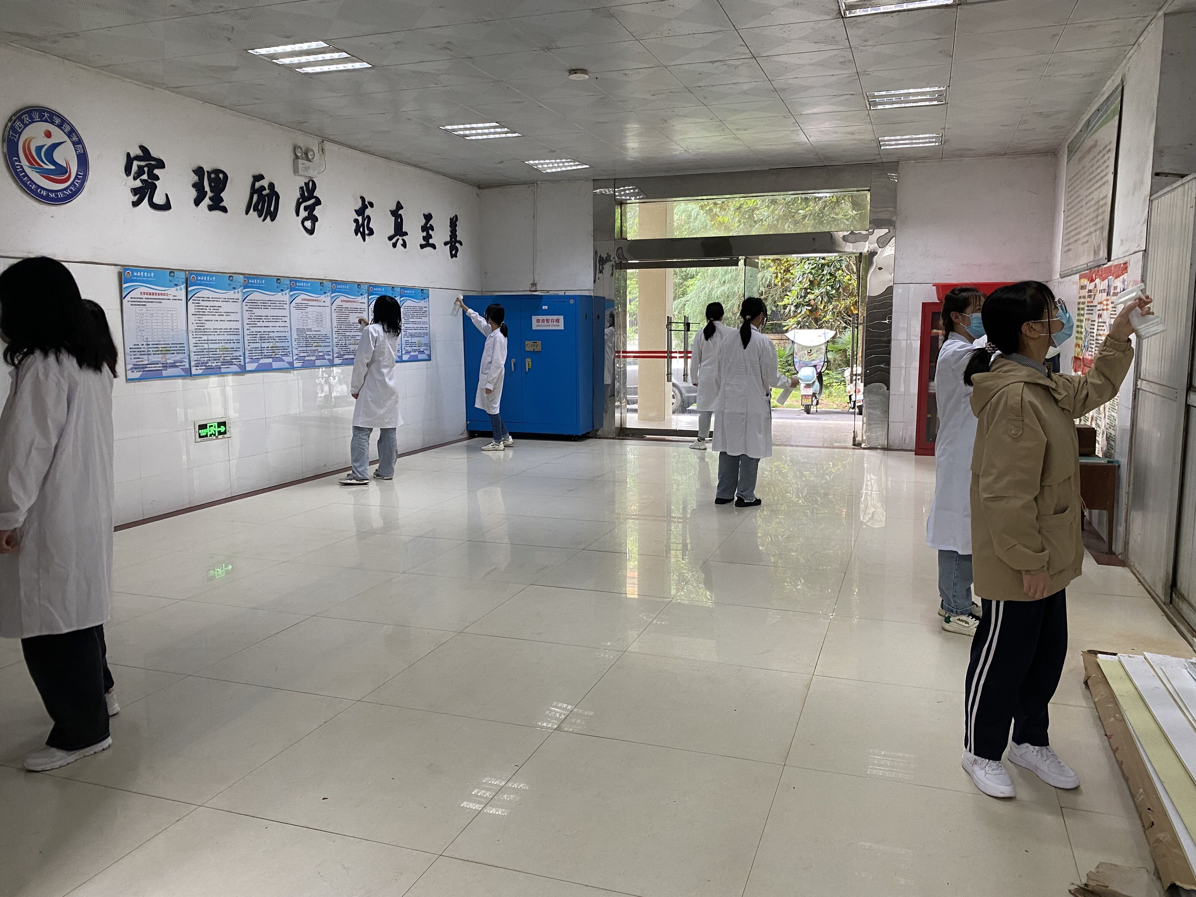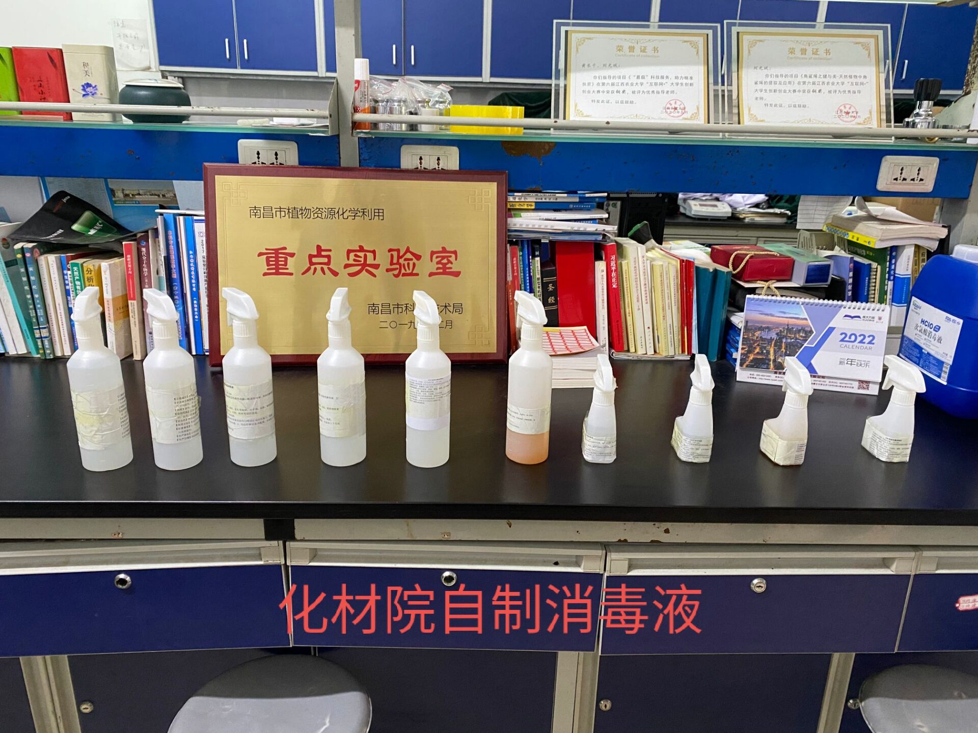 学院本科生在熊万明、聂旭亮、刘光斌、黄忠等专业老师的指导下,认真设计实验,精心调配试剂,研制出“樟树精油酒精消毒液”及“DCW新型含氯消毒液”。为更好地保障线下实验课程教学的有序开展,5月23日,WilliamHill官网学生利用自制的消毒液对实验室、办公室、走廊等场所逐一进行消毒杀菌,尤其对卫生间、楼道拐角、楼梯扶手、洗手池等重点区域进行反复消毒,进行地毯式消杀,确保不留死角,给学院全体师生营造了一个良好的工作学习环境。