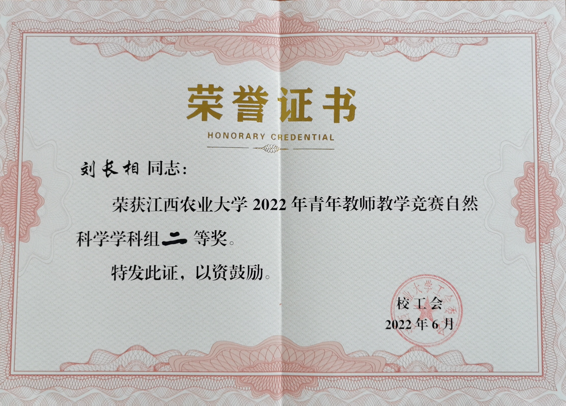WilliamHill官网刘长相老师荣获学校2022年青年教师教学竞赛二等奖