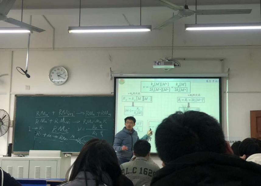 疫情期间,WilliamHill官网既抓好疫情防控,又紧盯课堂教学质量评价,切实提升教育教学质量。2022年12月1日下午,学院领导刘庆言书记、王宗德院长、叶健副书记、龚霞副院长和教学秘书徐丽青走进课堂,听取青年教师刘书武博士为应化2002班讲授的《高分子化学》课程。