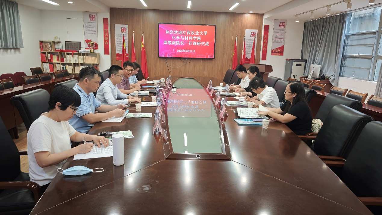龚霞副院长一行与华南农业大学材料与能源学院党委书记魏剑波、副院长孙理超、材料与能源学院党委副书记田立、材料系主任董汉武、化工与制药系主任袁腾、教务员张芳等进行座谈,双方就拔尖人才培养、人才培养方案课程设置、学生实习实践课程安排、党建品牌建设、教学成果奖凝练、科技奖申报等进行了深入交流。