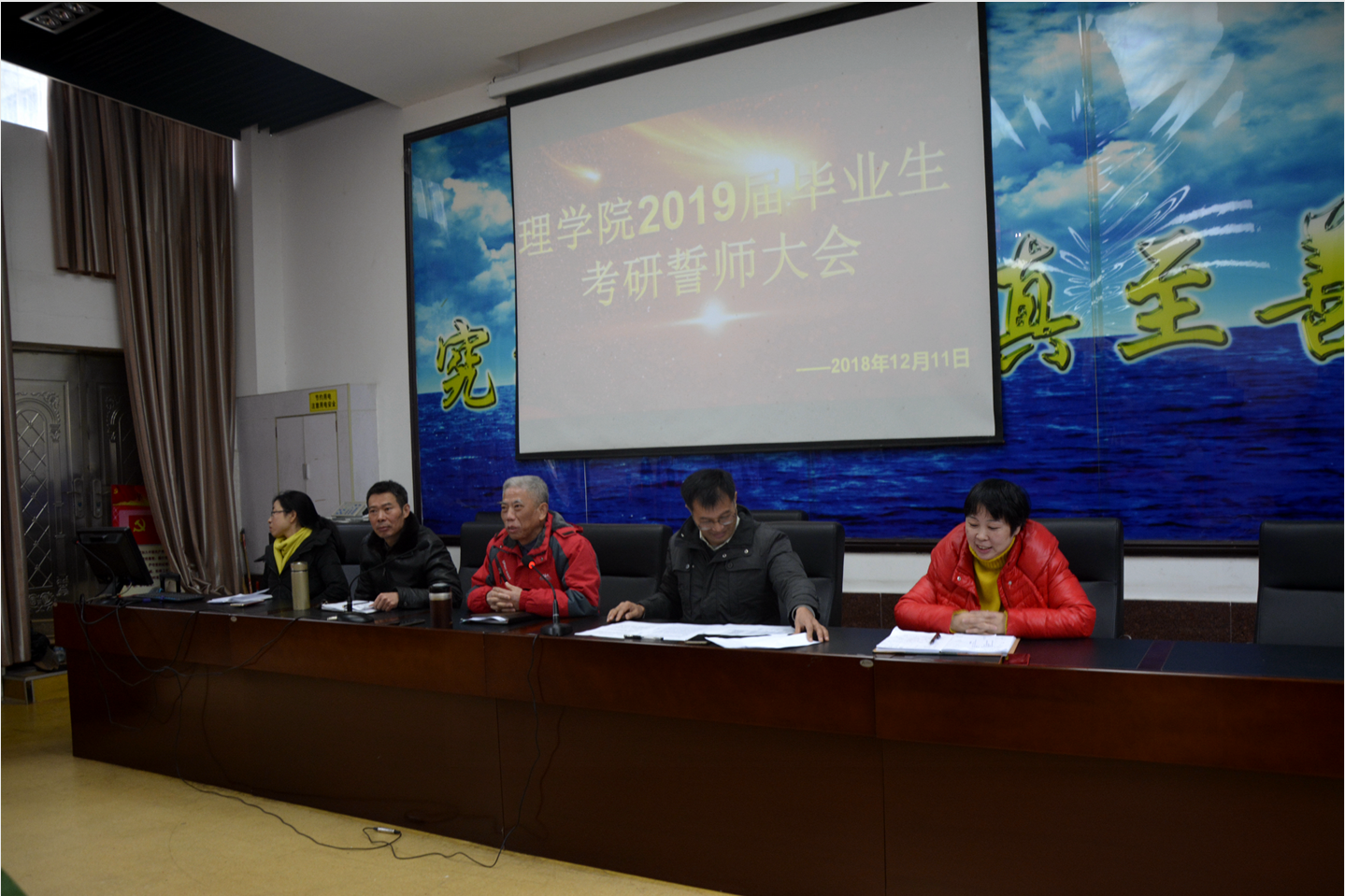 为浓厚考研氛围,强化学院对考研工作的指导,1211日,理学院召开2015级报名参加2019年硕士研究生入学考试的考前动员大会,理学院党委书记周阳、院长王义华、副院长黄长干、毕业班班主任及2019届毕业生考研代表共计70余人参会,会议由周阳主持。
