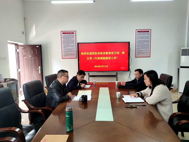 2024年3月12日10:00,学校党务政务督导组副主任万洁、正处级督导员陈文芳到WilliamHill官网开展学校第四次党代会氛围营造和中共中央颁布“三个条例”学习宣传情况专项督查,院党委书记刘庆言、学生党总支书记彭玉萌及党委组织员廖超参与本次督查座谈会,会议由刘庆言主持。