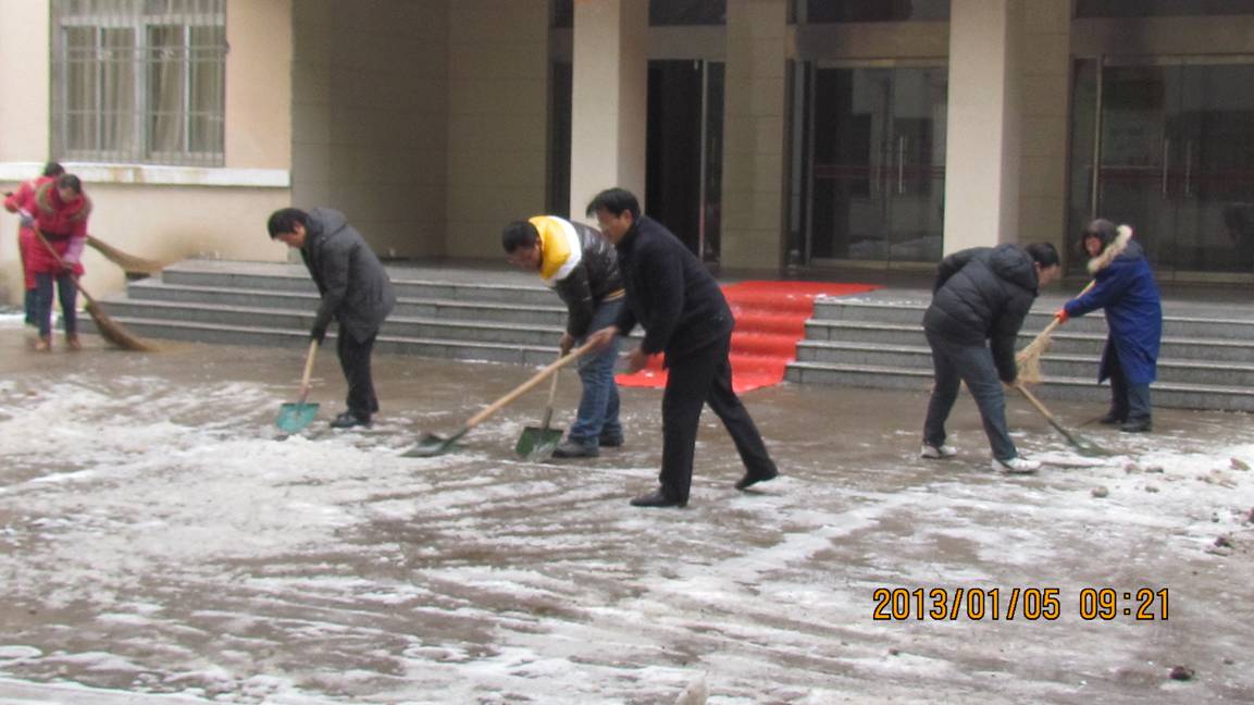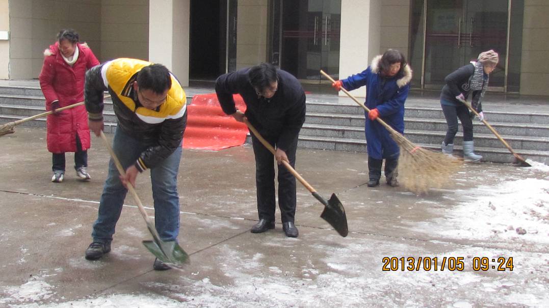 为了保障师生出入安全,5日上午,在学院领导的带领下,行政支部党员和办公室人员清扫校园积雪。大家团结协作,干劲十足,有的扫雪,有的铲雪,经过一番奋战,将学院前道路的积雪打扫得干干净净,开辟出一条洋溢着温情的畅通之路。