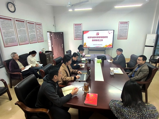 会议强调,意识形态工作是党的一项极端重要的工作,是为国家立心、为民族立魂的工作。新时代新征程,化材院要全面贯彻习近平新时代中国特色社会主义思想,坚持以习近平文化思想为引领,进一步完善意识形态工作责任制,把意识形态工作的领导权、管理权、话语权都牢牢掌握在党的手中,为学院实现高质量发展营造良好的舆论环境氛围。