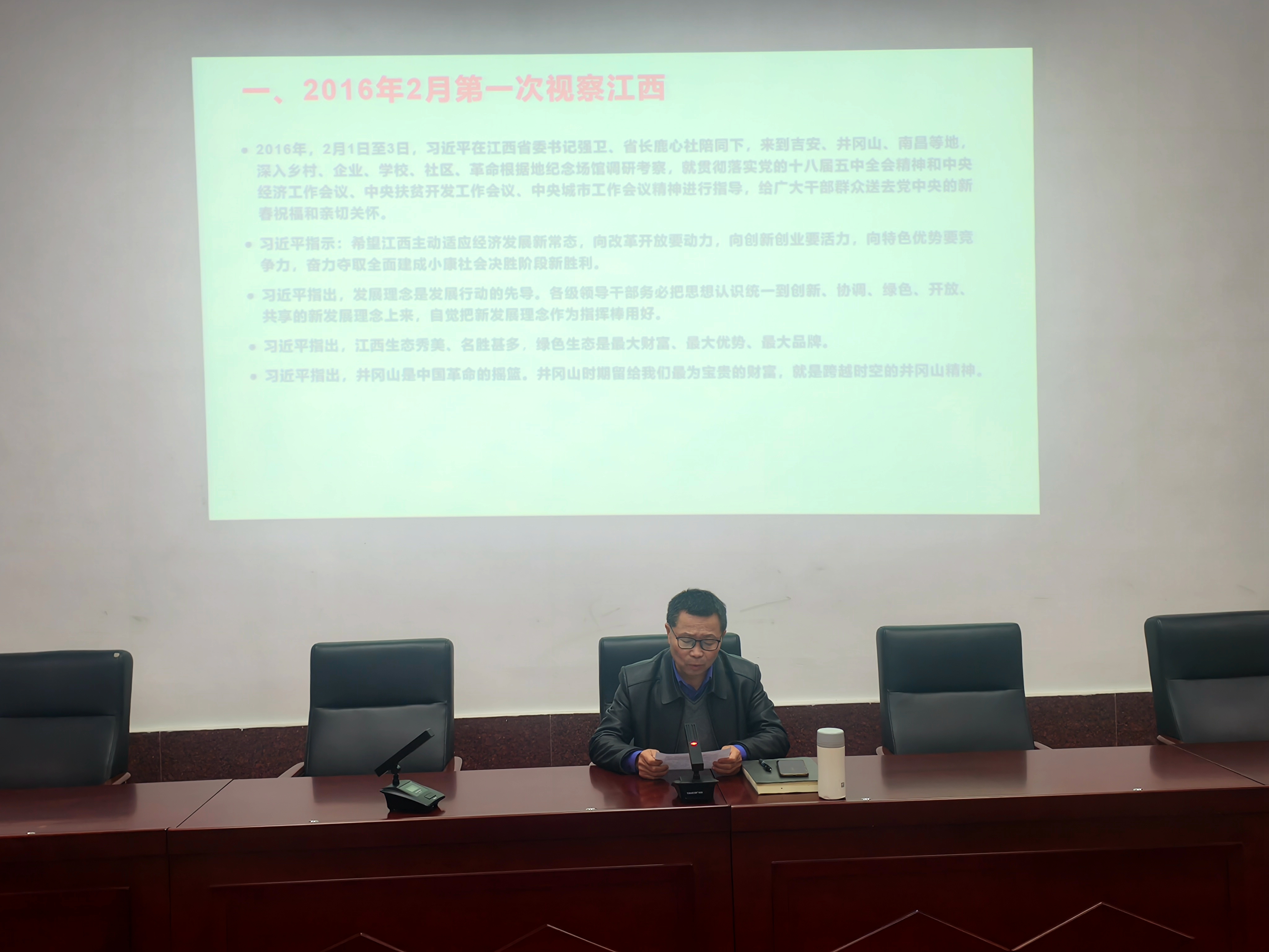 学习会上,院党委书记刘庆言组织全体教职工一起再次学习了习近平总书记考察江西重要讲话精神。