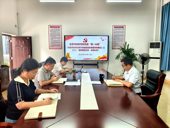 会议强调,化材院党委要认真学习领会、全面贯彻落实,把强化制度执行作为制度治党、依规治党的有效抓手。全体党员干部要经常学习党的各项制度,想事情、作决策、干工作习惯同党章党规对标对表,形成强烈的制度意识、规矩意识。