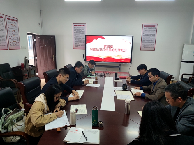 学习会上,彭玉萌组织与会人员认真学习了《中国共产党纪律处分条例》(下文简称《条例》)第四章“对违法犯罪党员的纪律处分”内容,班子成员结合个人工作实际开展交流研讨。