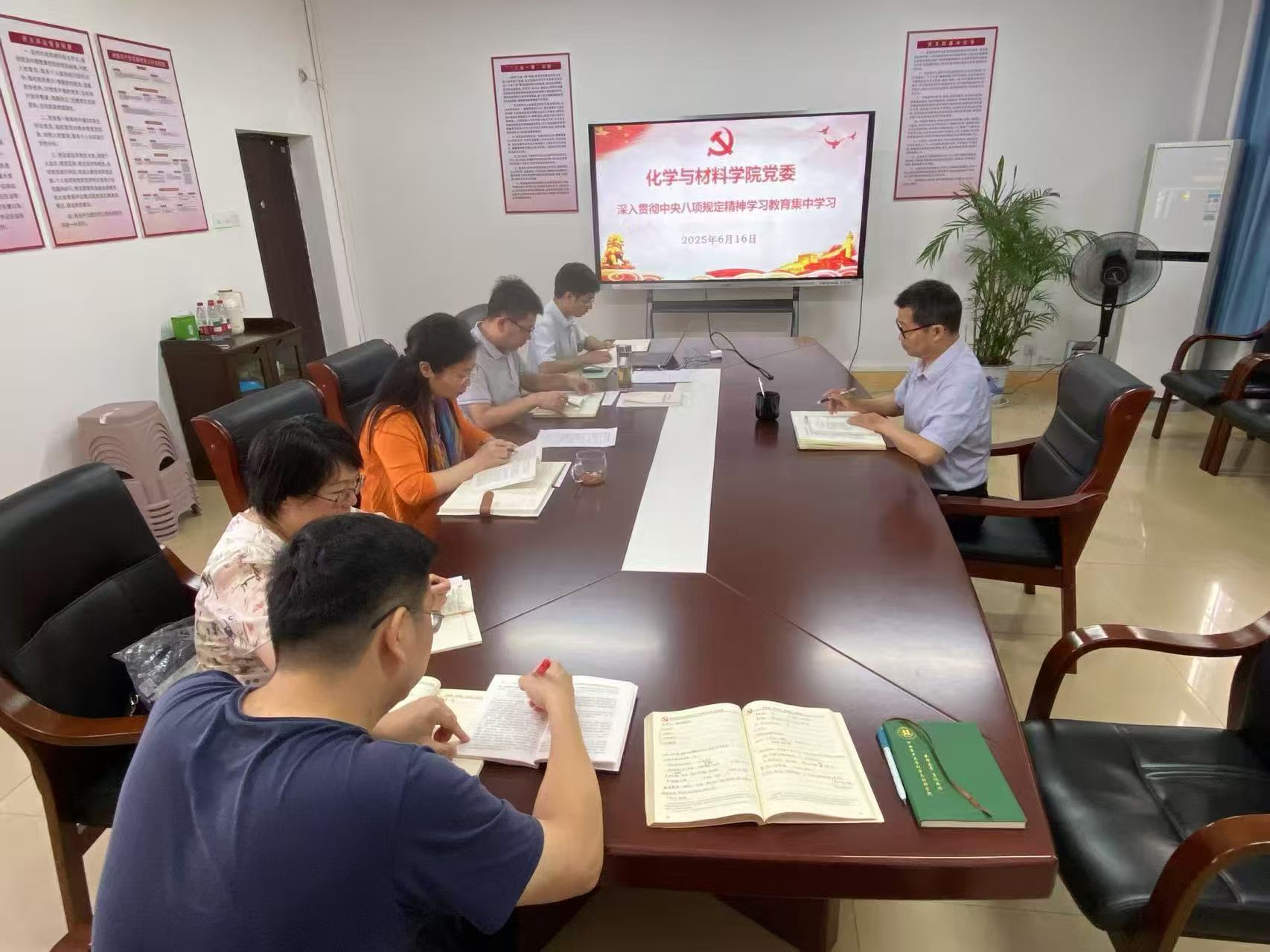 2025年6月16日9:10,学院党委召开扩大会议,开展深入贯彻中央八项规定精神学习教育集中学习。党委领导班子成员参会,九三学社社员、副院长龚霞,学生党总支书记彭玉萌及各党支部书记列席会议,会议由学院党委书记刘庆言主持。