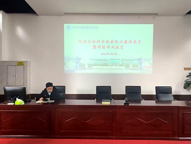 2026年3月2日10:00,学院召开教职工大会,开展廉洁警示教育暨师德师风教育,会议由学院党委书记刘庆言主持。