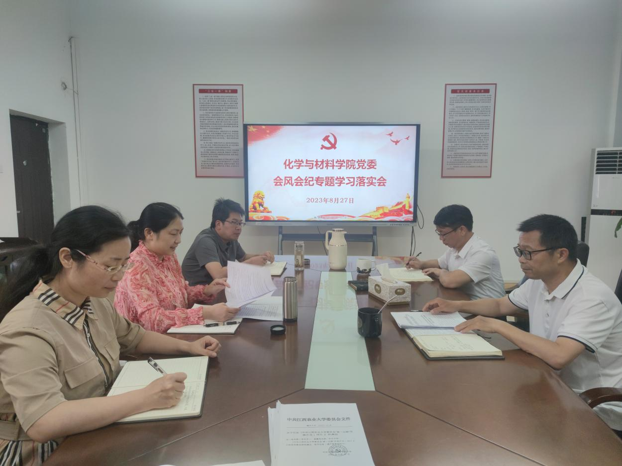 会上,院党委副书记叶健领学了《关于进一步严肃会风会纪的规定》和《江西农业大学关于深入开展会风会纪专项整治的实施方案》。