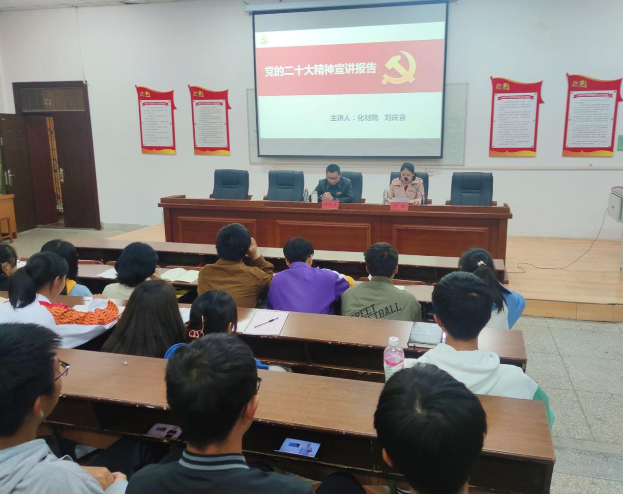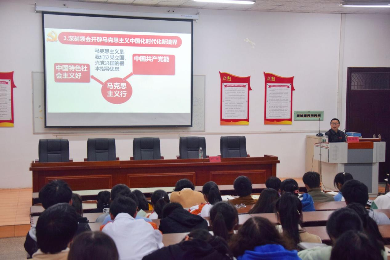 为深入学习宣传贯彻党的二十大精神,更好地推动党的二十大精神进校园、进班级、进课堂,同时扎实开展好新生入学教育、为新生上好专题党课,2022年11月4日晚上7点,WilliamHill官网于一教惟义楼党校教室举办党的二十大精神宣讲报告会,报告会由学院党委书记刘庆言主讲。学院党委副书记叶健、辅导员及182名新生参加报告会。