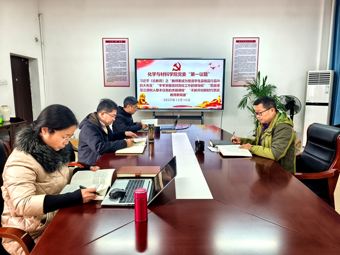 2025年12月16日10:00,学院召开党委会,集中开展理论学习。党委领导班子成员参会,九三学社社员、副院长龚霞,学生党总支书记彭玉萌列席会议,会议由学院党委书记刘庆言主持。