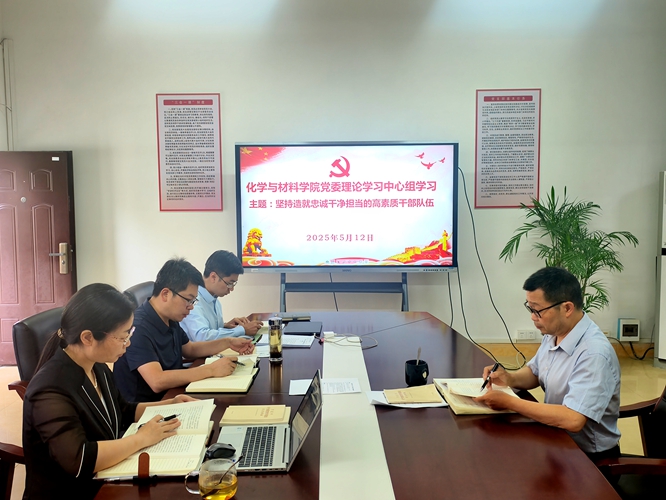 2025年5月12日8:30,学院党委理论学习中心组召开学习会,以“坚持造就忠诚干净担当的高素质干部队伍”为主题,继续深入学习习近平总书记关于党的建设的重要思想。全体党委委员参会,副院长、九三学社社员龚霞、学生党总支书记彭玉萌列席会议,会议由学院党委书记刘庆言主持。