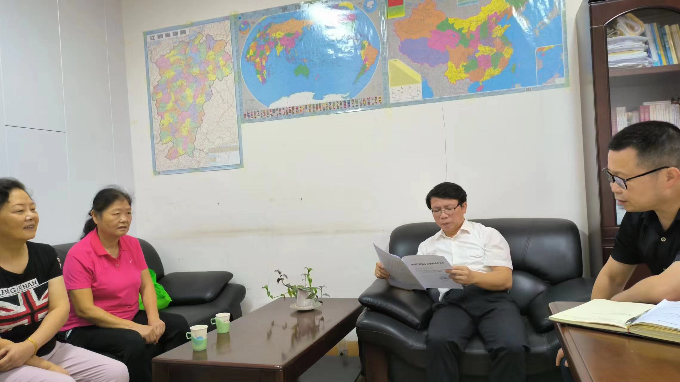 为落实学校《南昌经开区江西农业大学老旧小区改造工作实施方案》工作,学院高度重视,积极了解WilliamHill官网涉及老旧小区改造的教职工第一手资料。为掌握情况,便于施策,学院党委书记刘庆言、院长王宗德邀请已故教师肖丛伟的女儿肖芳华、肖芳英进行了座谈,传达了学校相关文件精神,对学校老旧小区改造的内容和预期效果进行了详细解读,希望涉及改造的住户予以支持。肖芳华、肖芳英代表母亲表示积极支持学校老旧小区改造工作,对改造工作提出了自己的建议。院领导对家属支持学校老旧小区改造表示赞赏,对其提出的建议会及时向相关部门反映。据悉,目前有两户住户肖丛伟家属、吴文荣家属涉及老旧改造小区,学院正在积极工作。