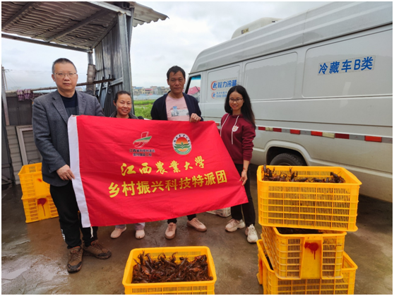 2024年4月14日,应永新县科技局的邀请,针对永新县栖凤塔农业科技有限公司的菌菇种植病虫害问题情况以及永新县禾浩农业发展有限公司稻虾养殖密度过高、水体污染等问题,江西农业大学化材院化学系支部贺雪梅博士、陈金珠教师以及研究生支部黄喜根教授到实地调研并取样,提出明确建议和方法,基地负责人对专家的服务非常满意。