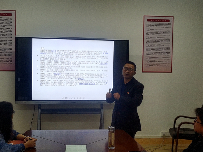 刘庆言围绕当下世界时事热点巴以冲突事件,以“巴以冲突以及给我们的启示”为题,从巴以冲突的历史沿革、五次中东战争、冲突难以解决的原因分析、此次冲突加沙的情况及对我们的启示五个方面,深刻阐述了巴以冲突的来龙去脉,为普通党员如何正确看待巴以冲突问题提供了指导。
