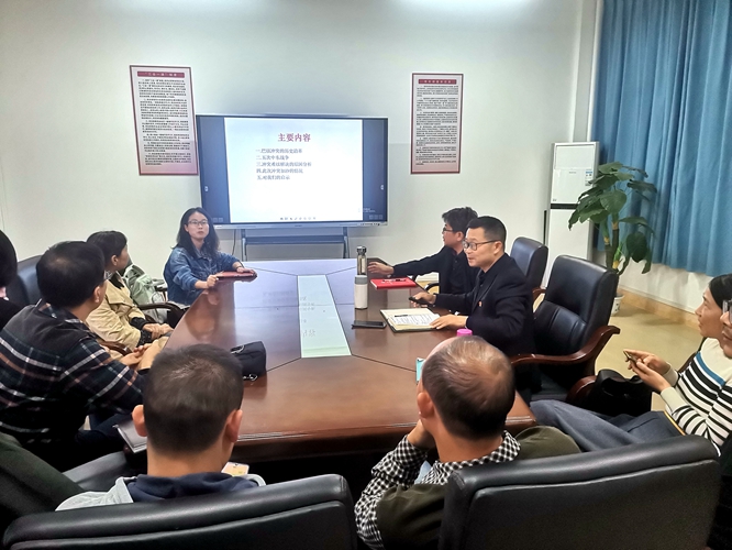 202311714:50,学院党委书记刘庆言在致理楼215室为化学系支部全体党员上党课。本次党课由化学系党支部书记贺雪梅主持。