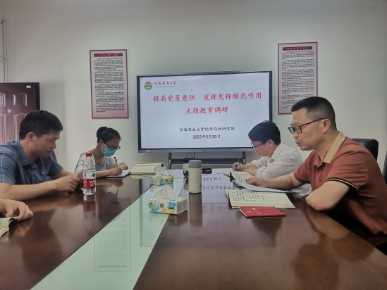 王宗德院长要求大家提高认识,认真整改,切实提高党员意识,发挥先锋模范作用。支委要分好工,创新工作方法,帮助大家提高意识。党委书记刘庆言肯定了大家的成绩,同时指出了大家的不足。希望全体党员继续加强习近平新时代中国特色社会主义思想和党的二十大精神学习,继续强化学习强国和赣鄱党建云的学习;支委要主动承担责任,明确工作职责,勇争先作示范。最后对化学支部提升党员意识提出四点宝贵意见。