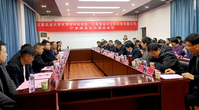 2024113日上午,为进一步深化产学研用校企合作、丰富拓宽科技创新及人才培养体系,江西普瑞丰生态科技有限公司董事长刘云一行来访我校,与化材院进行产学研用合作洽谈,并签署合作协议。副校长贺浩华、王文君,科技处相关负责人、化材院党政班子以及相关人员参加会议。