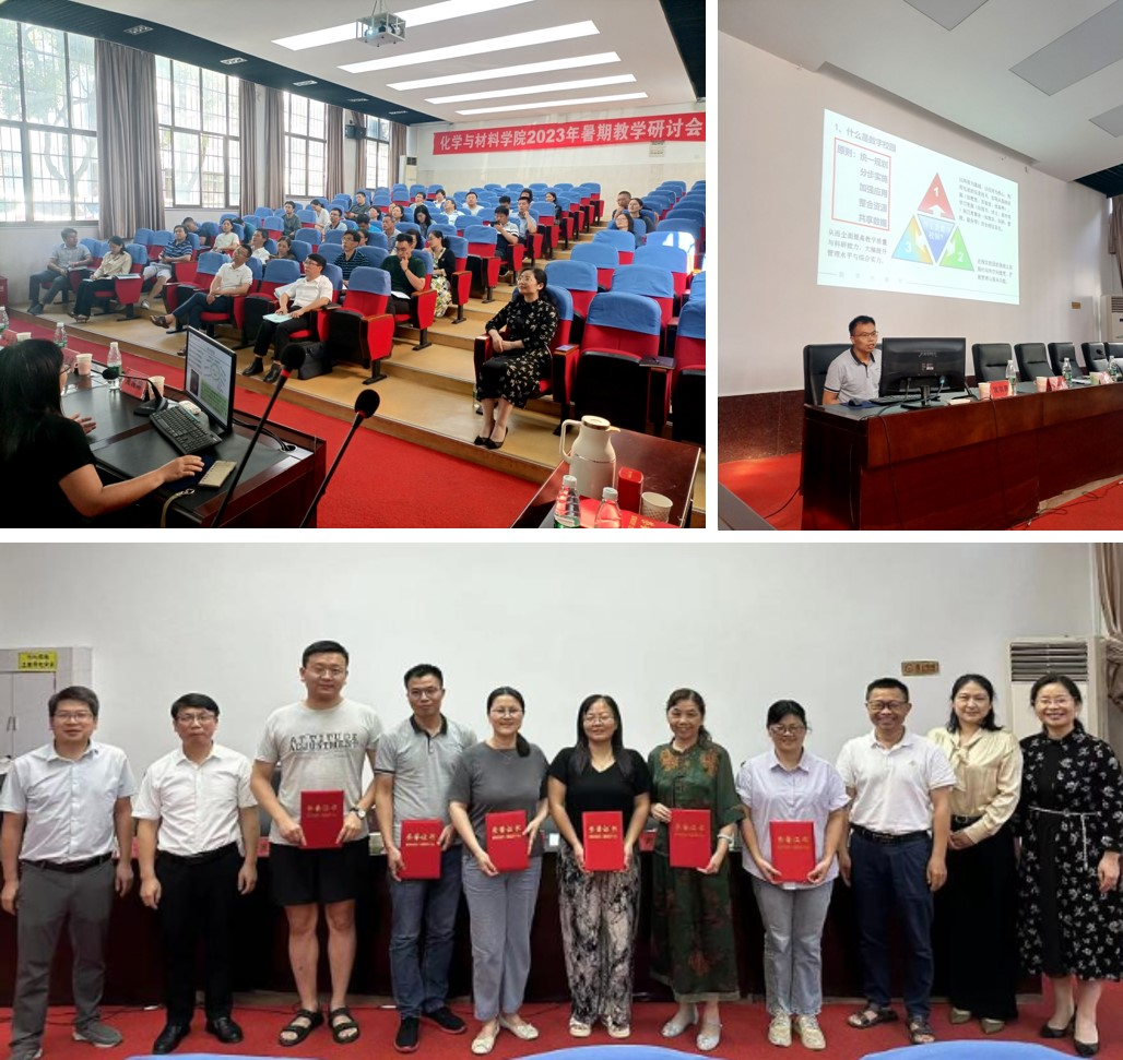 龚霞副院长作了“以教学成果奖申报为牵引,扎实做好本科教育教学工作”的主题报告,介绍了学院本科教育教学工作的顶层设计、一年来本科教育教学工作的成效、今年本科教育教学工作寻求的突破。材料支部党员刘倩、邱美代表教研室做了教改心得报告,与大家交流了经验。最后,学院宣布了评出的6篇教改优秀论文,其中我支部刘倩、邱美、龚磊、胡嘉麒4位教师荣获证书。