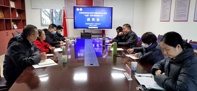 2023 年12月6日,为加快江西现代农业强省建设,进一步推进乡村产业振兴和人才振兴提供有力保障,农业农村厅一级调研员谢俊峰及相关领导对正在实施的“头雁”项目培育工作进行调研,对目前存在的问题、如何更好发挥专家的智力、科技服务与研发和调动头雁学员在产业发展上增强新动力,在头雁领航上展现新作为等方面进行了交流,继续教育学院周艺萍院长和汤雄杰书记、化材院黄喜根、食品学院肖建辉、吴磊燕和刘三风等教授参加座谈。