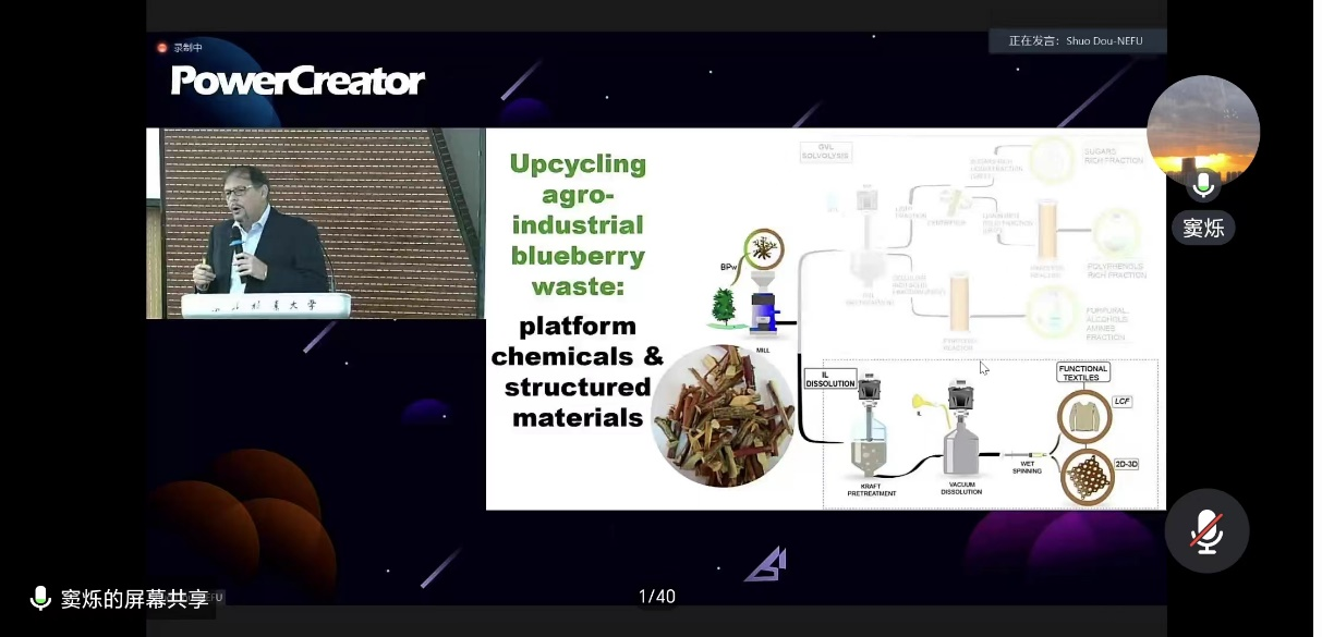 研讨会由东北林业大学谢延军教授主持,会上,加拿大不列颠哥伦比亚大学Orlando J. Rojas教授、新加坡南洋理工大学Xiaodong Chen教授、美国缅因州立大学Yonghao Ni教授、加拿大新布伦瑞克大学Huining Xiao教授、加拿大多伦多大学Ning Yan教授、德国下莱茵应用科学大学Bernd Strehmel教授、加拿大林产品创新研究院Xuejun Zou教授、美国北德克萨斯大学Liping Cai教授、德国哥廷根大学Kai Zhang教授、美国北卡州立大学Martin Hubbe教授、巴西Suzano公司Gary Li总监、中国MedPHA公司Jinyan Lv首席执行官等分别作特邀报告,与参会者一同分享了酶的优势和纤维素纳米材料、纸包装多重阻隔性能、可再生生物质的利用、木质素在增值产品中的应用、碳中和等领域的最新研究进展,讨论了生物基材料与能源领域的前沿热点和变革方向,探讨研究领域的可持续发展方向。