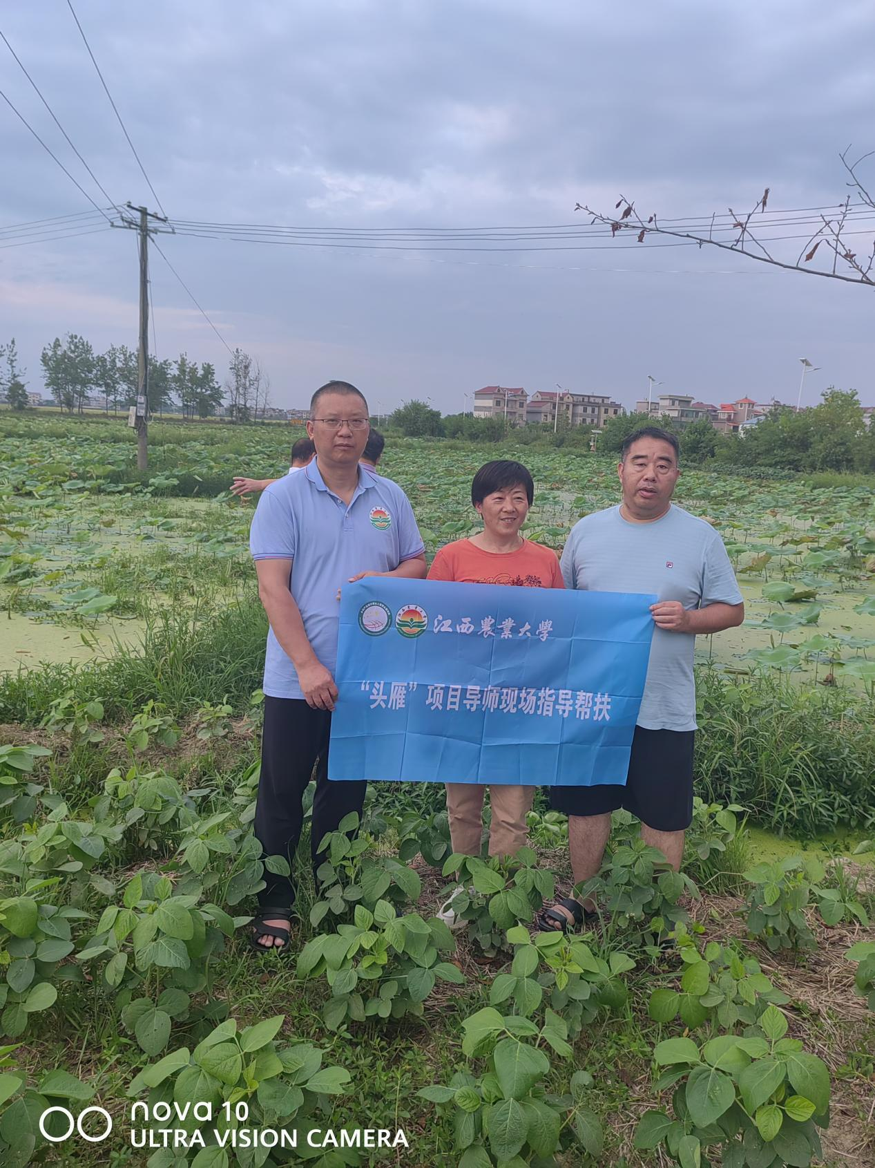 2023 年7月8日,应新干县农业农村局的邀请,针对新干县西江悦田园综合体蔬菜种植重茬产量低和莲藕病虫害问题情况,学院研究生支部书记黄喜根邀请农学院辜青青和向妙莲教授等到实地调研并取土样,提出明确建议和方法,农业农村局李主任和基地负责人邹敏根对专家的服务非常满意。