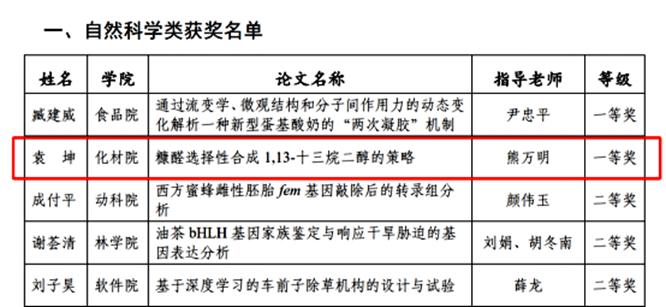 此外,根据《关于公布江西农业大学研究生第十六届“惟义”学术论坛获奖名单的通知》(赣农大研发〔202453号)袁坤荣获第十六届惟义学术论坛(自科类)一等奖。