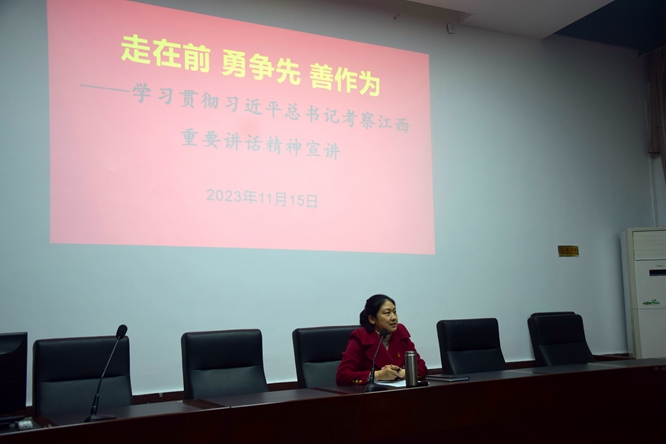 为深入学习好、宣传好、贯彻好习近平总书记考察江西重要讲话精神,贯彻落实学校及学院党委有关要求、部署,2023年11月15日18:30,学院党委副书记叶健在致学楼报告厅开展学习贯彻习近平总书记考察江西重要讲话精神宣讲,学院全体辅导员、2023年下半年入党积极分子、党的近期发展对象、各团学组织主要学生干部及各班级班长、团支书等70余人参加宣讲会。