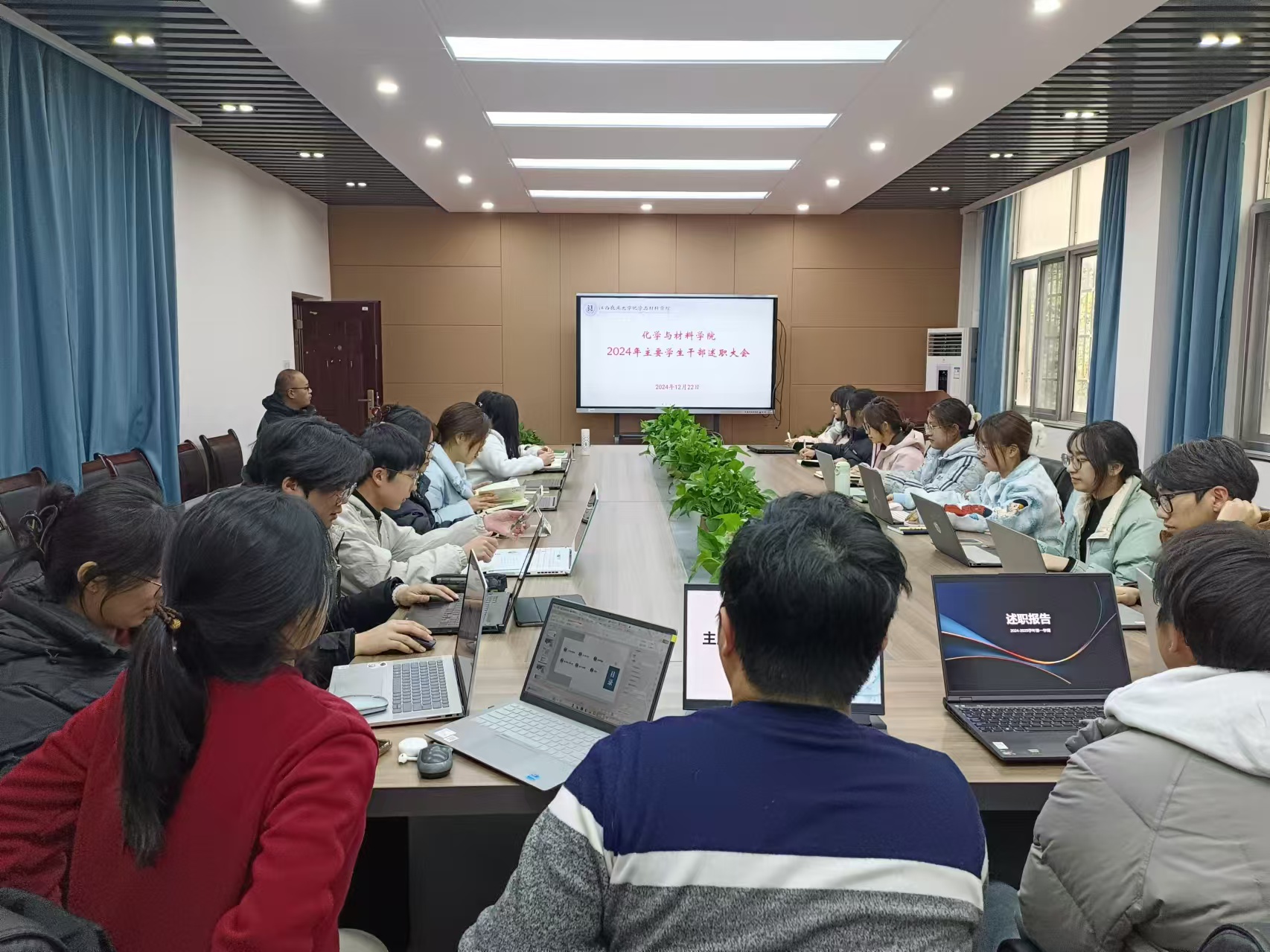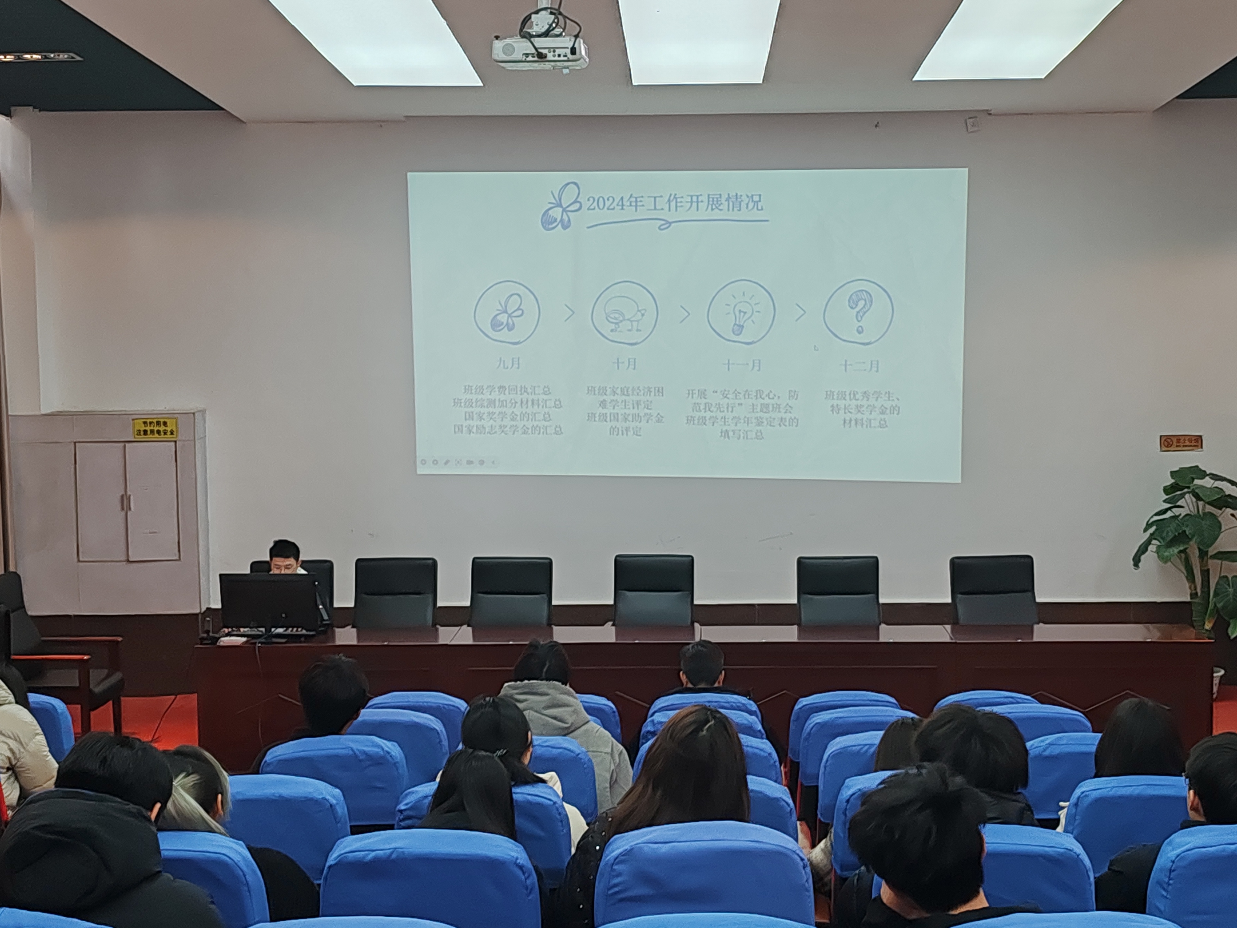 为全面梳理和总结学生干部2024年度的工作情况,进一步提高学生干部履职意识,加强学生干部队伍之间的沟通协作,更好地服务全院师生。2024年12月22日下午,学院召开了学生干部述职大会,学生党总支书记彭玉萌、学工办廖超老师、邓雪云老师以及全院学生干部参加本次大会。