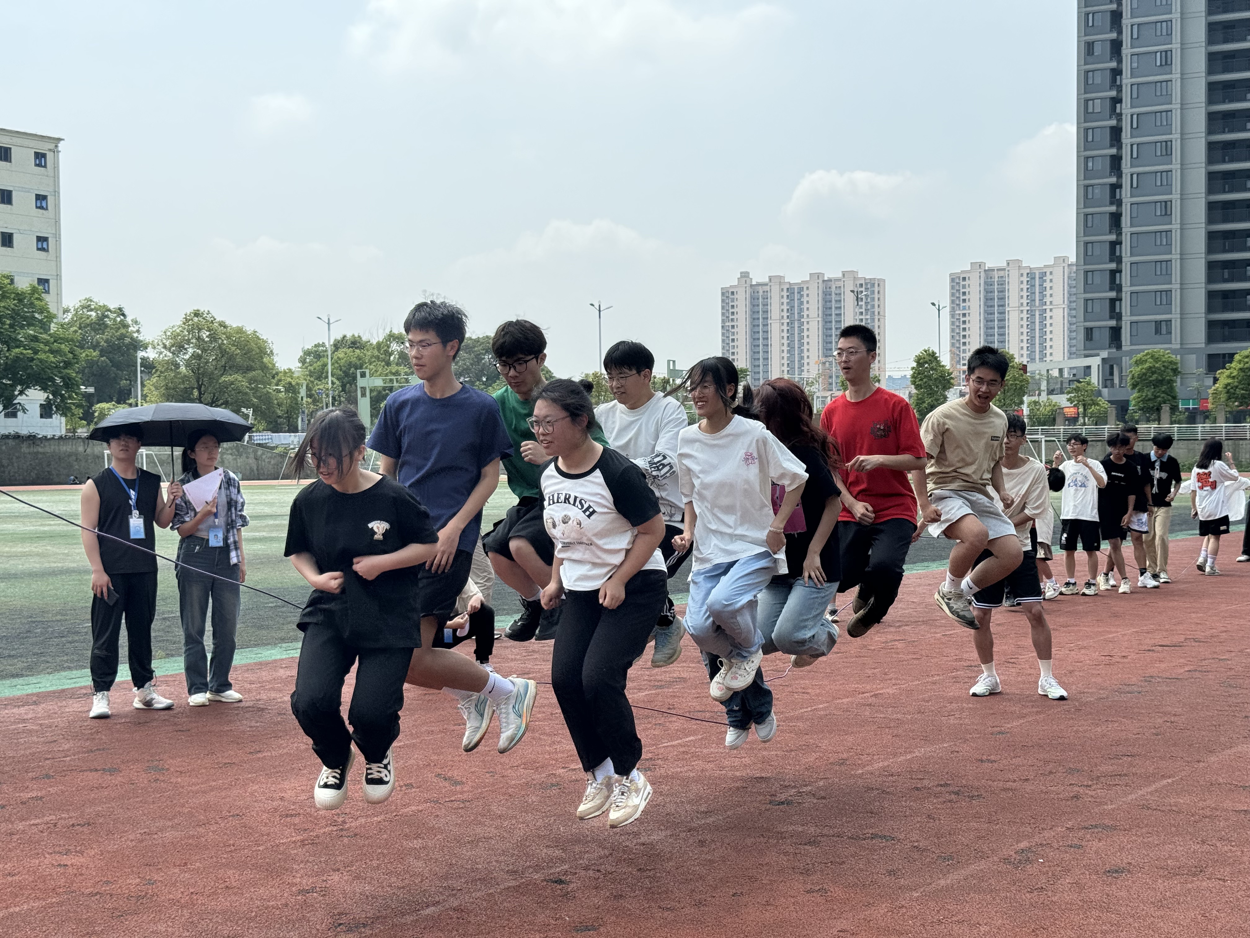 为丰富同学们的课余生活,增强班级凝聚力,同时推广健康向上的体育精神。5月19日上午10:00WilliamHill官网第一届班级跳绳比赛在南区田径场隆重举行。