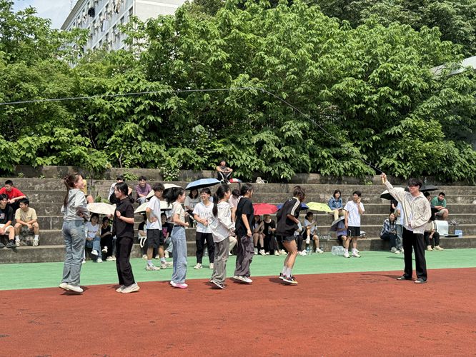 此次活动每班派五位男生五位女生跳绳,两分钟跳绳数最多的班级获胜。比赛现场氛围热烈,参加比赛的同学们全神贯注,默契配合,他们凭借着过人的耐力和技巧,不断刷新着跳绳的纪录。观众们的掌声和欢呼声此起彼伏,为选手们加油鼓劲。