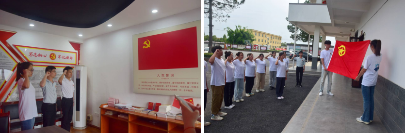 开展一次“重温誓词,勇担使命守初心”宣誓活动。为提升学生的思想认识和政治觉悟,7月1日中午,营队组织“三下乡”队员分别开展“重温誓词,永葆初心”入党、入团宣誓活动。大家在党旗和团旗前进行郑重宣誓,坚毅的目光、铿锵有力的誓词,展现出他们不忘初心、勇担使命的信心和决心,进一步激发了他们的身份认同感、责任使命感和组织归属感。大家纷纷表示,要将誓词铭记于心并转化为实际行动,以昂扬的姿态为实现中华民族伟大复兴不懈奋斗。
