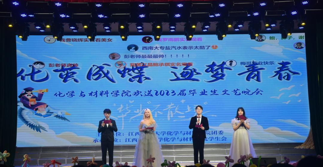 风吹散馥郁的花香,夏花着上斑斓的盛装,栀子花开的季节,总是伴着离别的气息。2023年5月17日晚7点,校大礼堂灯光璀璨、气氛热烈,WilliamHill官网“化茧成蝶,逐梦青春”欢送2023届毕业生文艺晚会在此隆重举行。学院党委书记刘庆言、院长王宗德、党委副书记叶健、全体毕业班班主任、辅导员、部分教师及全体学生参加晚会。特邀嘉宾学院原党委书记周阳应邀参加晚会。