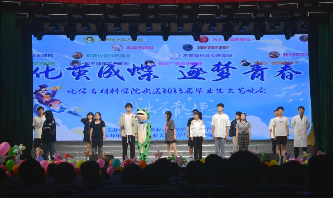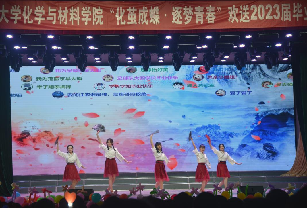 晚会共分为“青春拂晓、情系江农;青春绽放、梦想起航;青春无悔、圆梦今朝;青春逐梦、行远思恩”四个篇章。晚会在军乐团的精彩表演中拉开帷幕,接踵而至的歌曲串烧、舞蹈、相声和小品等节目彰显着艺术色彩,19个形式多样、精彩纷呈的节目彰显着对毕业生的不舍深情,表达着对毕业生最美好的祝福。“第一次踏入江农的校门,第一声校歌唤醒清新的校园,第一缕阳光照射在稚嫩的脸庞。”毕业班班主任诗朗诵《逐梦青春》勾起了大家对大学生活的无尽回忆,将晚会气氛推向了高潮,毕业生为班主任送上鲜花、深情拥抱,师恩难忘,牢记心中。毕业班的集体合唱道出了所有毕业生对母校和学院的眷恋不舍之情,也道出了所有毕业生对未来美好生活的翩翩向往。