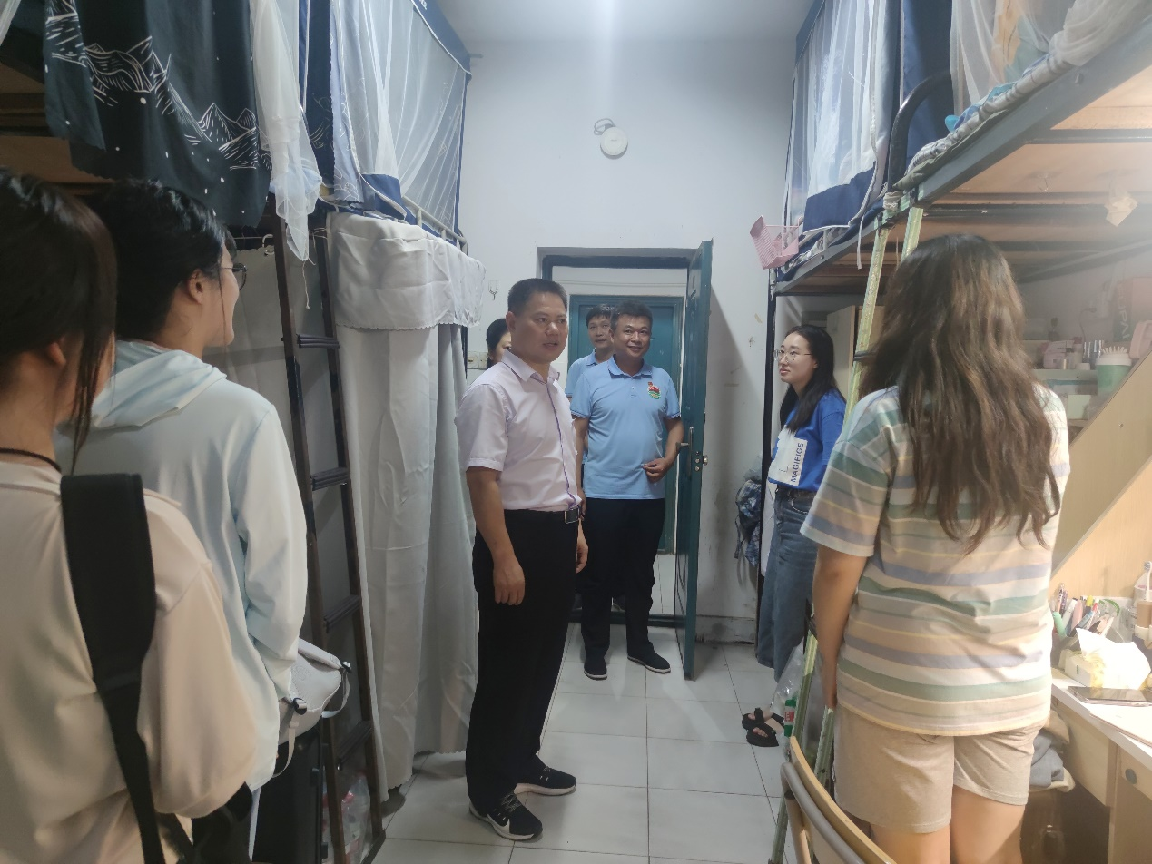为关心学生开学初的学习生活状况,2023年9月5日晚,校党委副书记蔡海生深入WilliamHill官网2021级学生宿舍走访慰问学生,学工部部长朱国海、副部长李海峰及WilliamHill官网党委副书记叶健陪同。