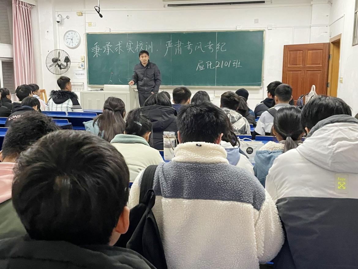 以主题班会为核心,提前做好宣传教育。诚信是中华民族的传统美德,诚信考试是立德树人的重要内容。各班级利用主题班会、专题活动开展考风、考纪及诚信教育活动,开展诚信考试团日活动进行警示教育,组织学生学习考试相关的规章制度,同时利用学院官方微信公众号推送诚信教育推文,引导学生遵章守纪,杜绝考试舞弊行为。