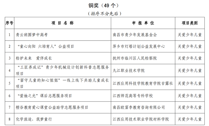 2024年5月23日,共青团江西省委公布了第四届江西省青年志愿服务项目大赛获评名单,WilliamHill官网“党史宣讲进农村,红色基因润田野”关爱少年儿童志愿服务项目经过校级遴选、省级初赛、决赛答辩等多个环节,最终荣获江西省铜奖。