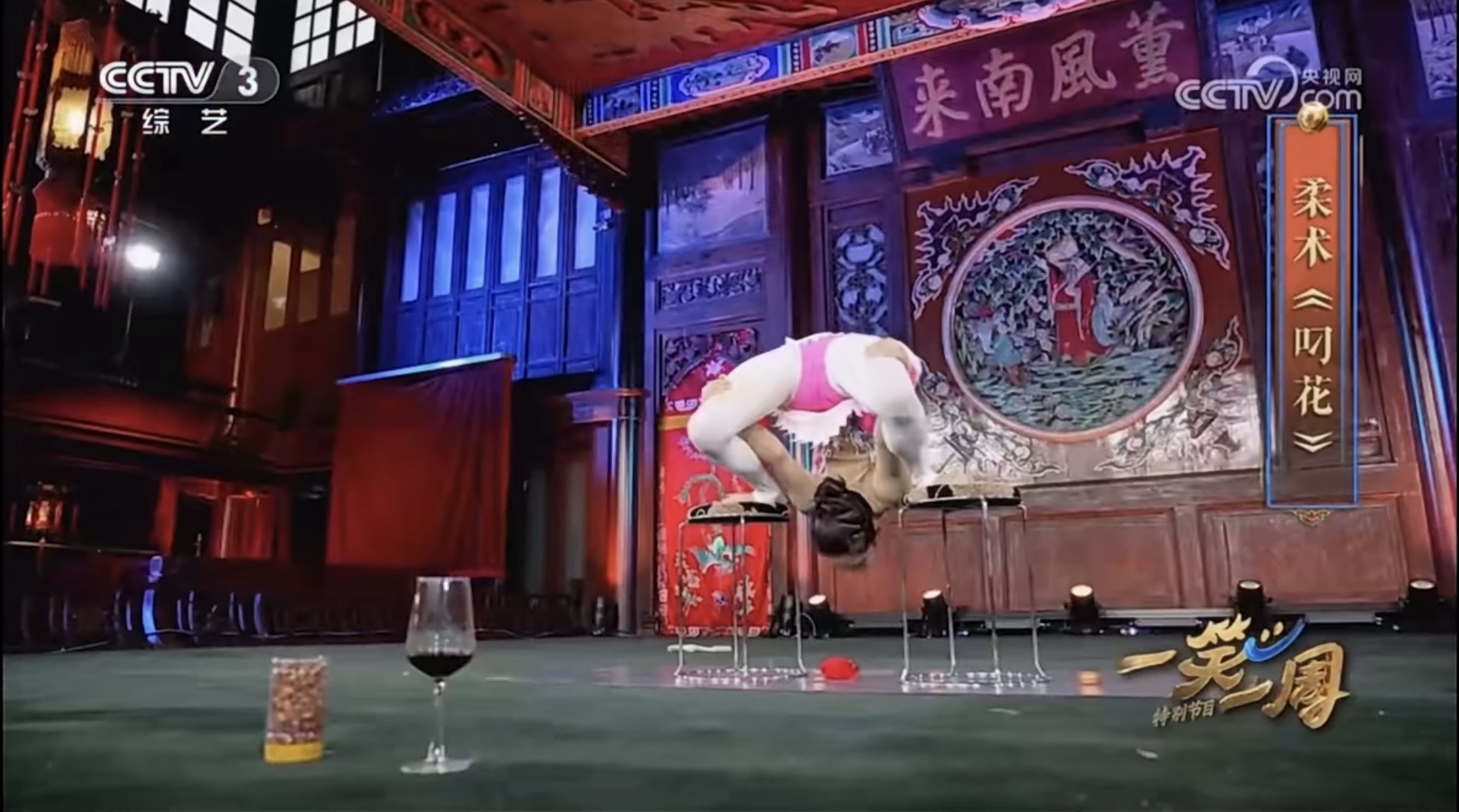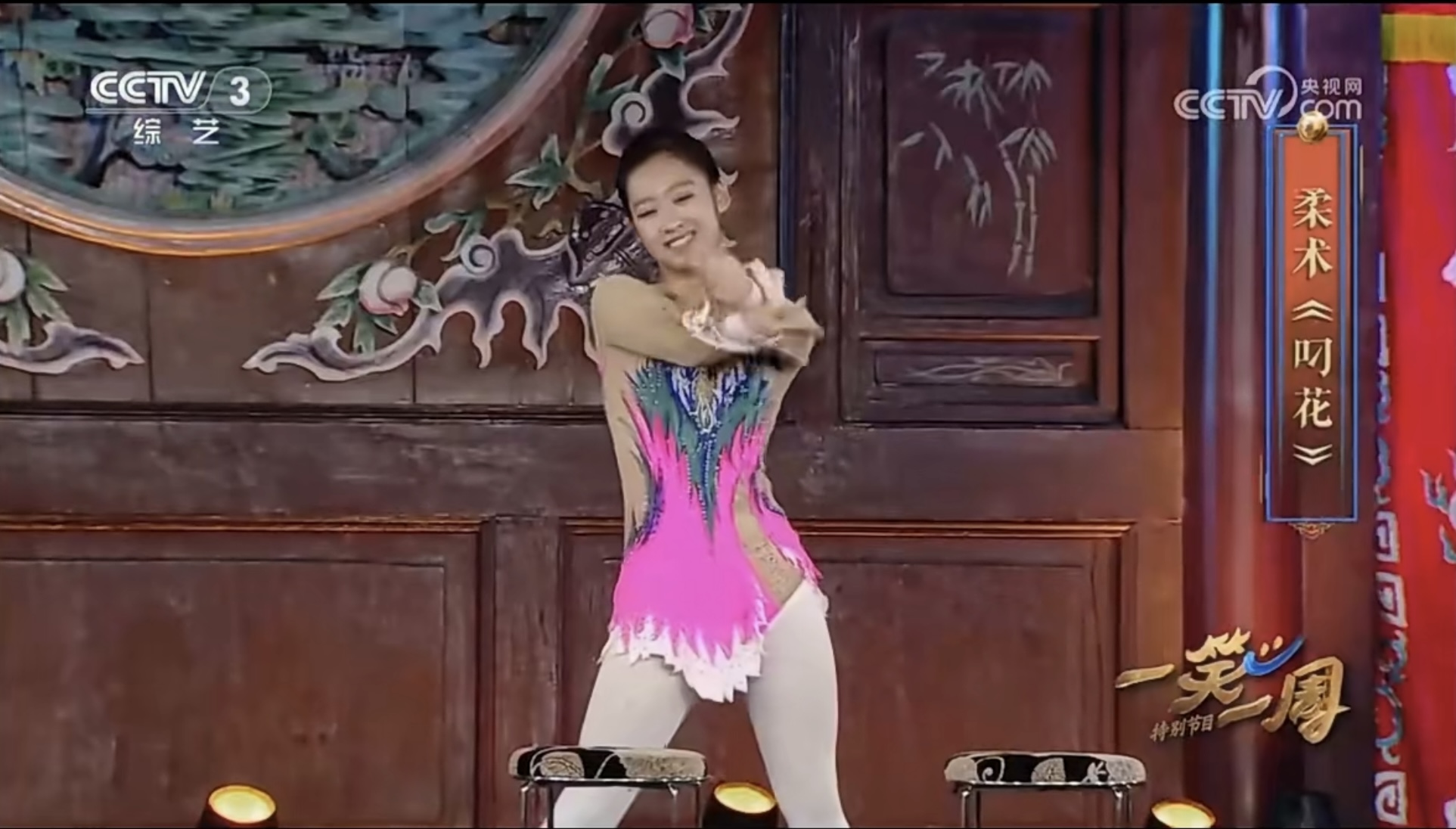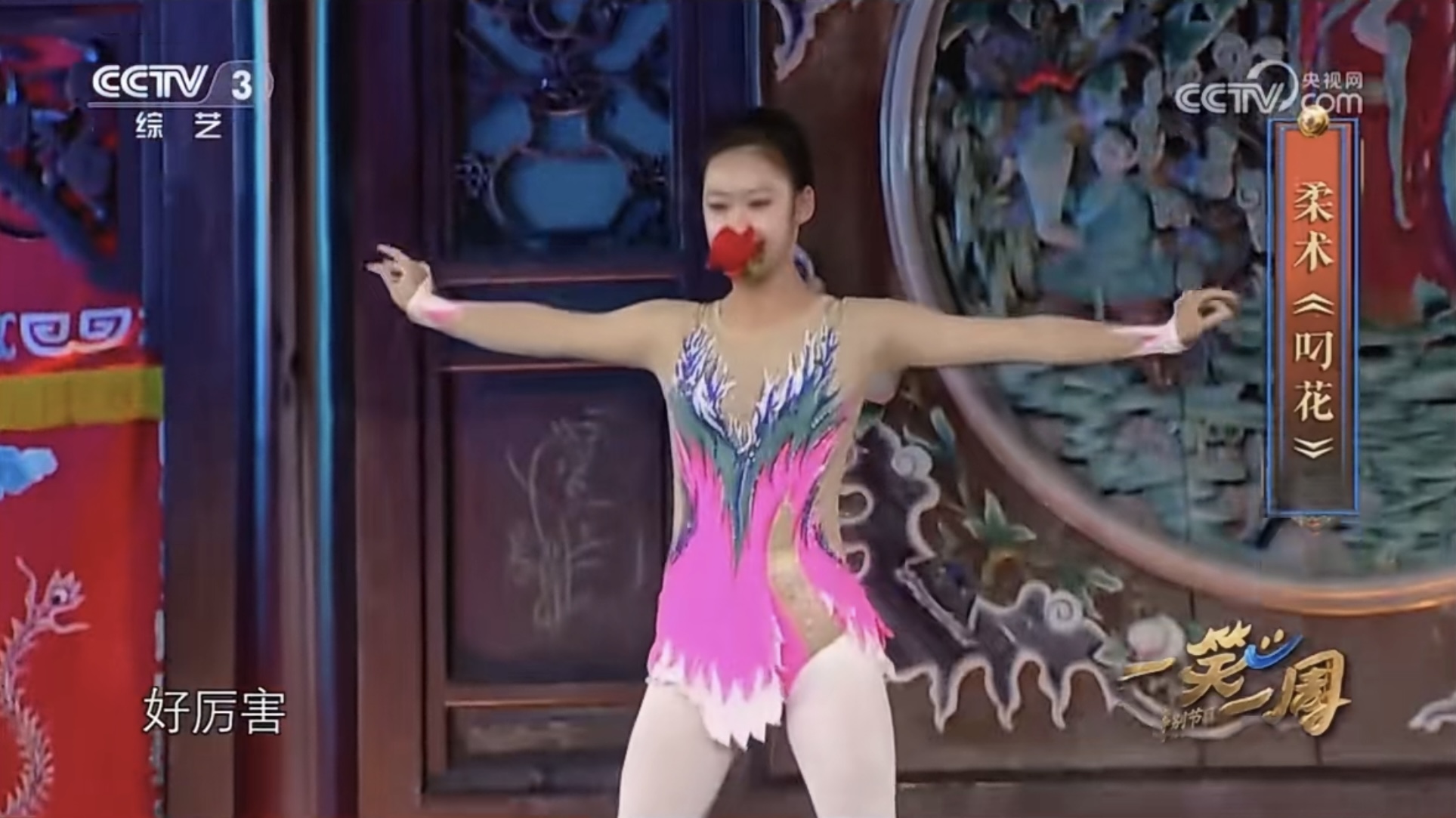 2024年9月20日,WilliamHill官网材料2302班令狐天艺同学受邀参加中央电视台CCTV-3频道《我爱满堂彩》节目,表演柔术《叼花》。
