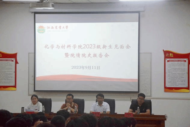 为增强新生对院情院史和学科专业的了解,9月11日晚上,学院开展2023级新生见面会暨院情院史报告会,院长王宗德从历史沿革、学科专业、人才培养、师资队伍、平台建设、科学研究六个方面对院情院史做了详细的介绍,并嘱咐同学要扎根科学研究,实现人生理想。9月12日上午,学院副院长卢丽敏、材料与化工系主任刘倩分别为应用化学和材料化学专业学生作专业介绍,从专业发展前沿、专业学习要求、专业发展前景介绍了学科专业,让新生对于专业学习和人生志向有了更加清晰的规划。