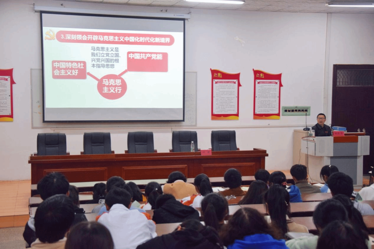 为深入学习宣传贯彻党的二十大精神,更好地推动党的二十大精神进校园、进班级、进课堂,同时扎实开展好新生入学教育、为新生上好专题党课,2022年11月4日晚上7点,WilliamHill官网于一教惟义楼党校教室举办党的二十大精神宣讲报告会,报告会由学院党委书记刘庆言主讲。学院党委副书记叶健、辅导员及182名新生参加报告会。