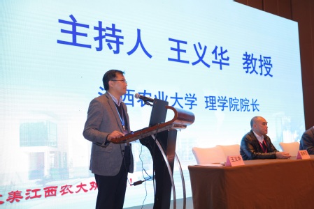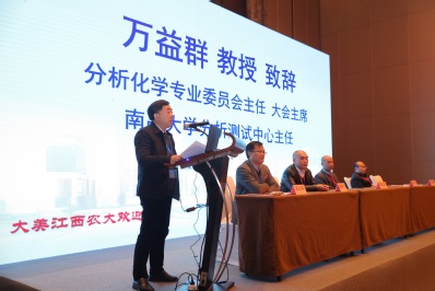 江西省化学化工学会理事长陈义旺教授代表省化学化工学会致辞。陈理事长对我省分析化学学科的发展给予了充分的肯定,同时也提出了殷切期望,希望大家相互支持、相互合作、相互欣赏、共同发展,为分析化学学科可持续发展做出积极贡献。江西省高等学校分析化学专业委员会主任、大会主席、南昌大学万益群教授代表主办方致辞。万主任对大会的顺利召开表示祝贺,并对为大会顺利召开提供帮助和支持的单位、专家表示衷心的感谢。大会开幕式由理学院院长王义华教授主持。