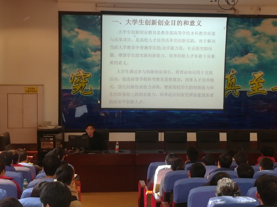 刘光斌老师结合自己多年指导大学生创新创业的经历,讲述了大学生创新创业目的和意义、介绍了“可再生绿色能源开发团队”情况 、讲解了“挑战杯”全国大学生课外学术科技作品竞赛、“创青春”创业大赛、“邮储银行杯”大学生创业竞赛、“互联网+”创新创业大赛等各竞赛活动及取得成绩、 并举例说明各类竞赛申报书撰写的方法和注意事项。