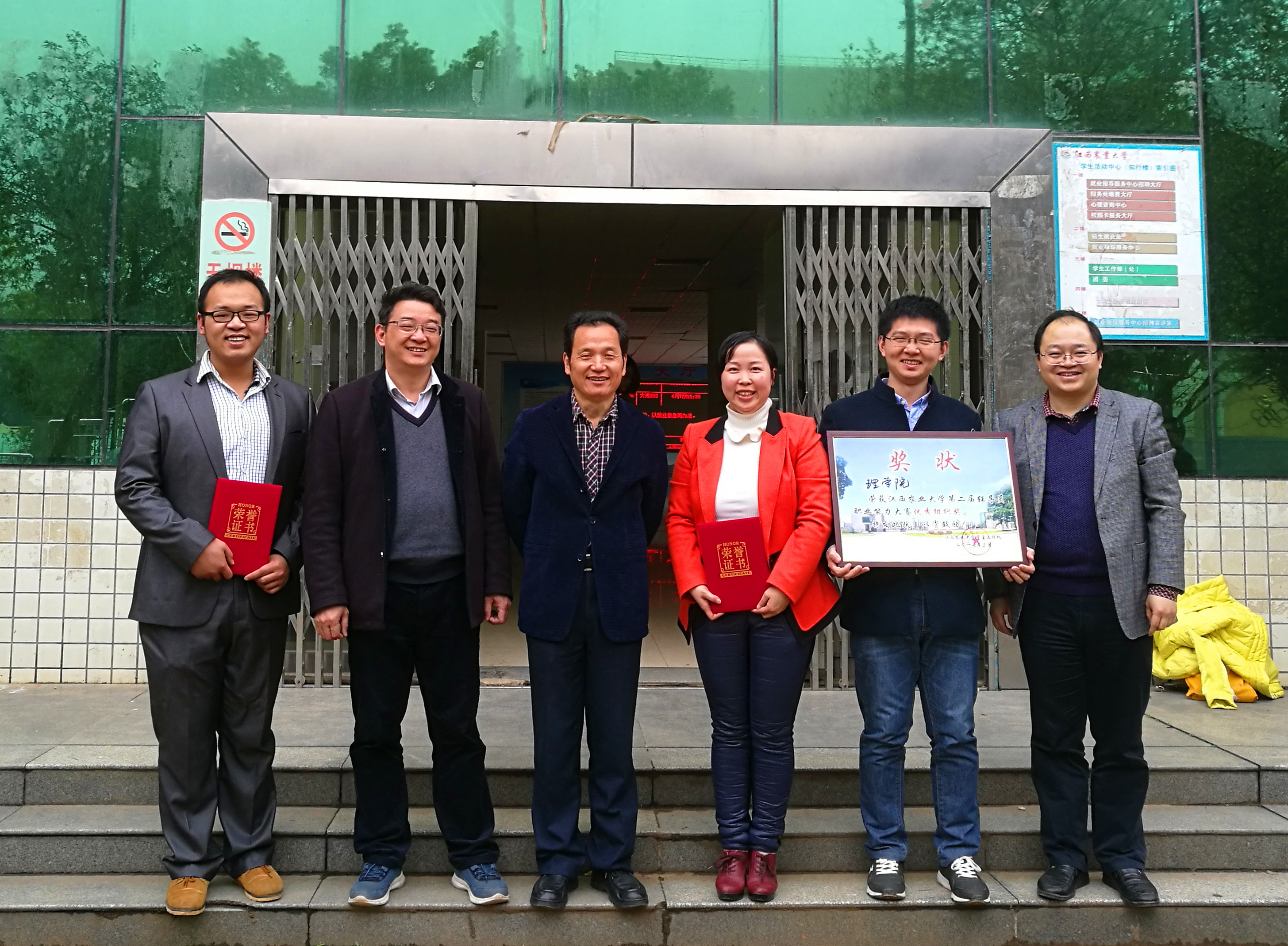 在刚刚落幕的江西农业大学第二届辅导员职业能力大赛中,WilliamHill官网团委书记李莉萍荣获二等奖,学工办指导老师廖超荣获优胜奖,理学院作为全校仅有的三个学院之一获评优秀组织奖。