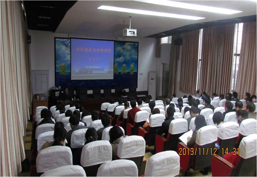 贺浩华副校长从学科建设的意义和作用入手,结合自己多年的实践体会,阐述了学科建设与科学研究、专业建设、学位点建设等多方面的基本关系,并指出了学科建设还存在的几个问题,分享了国内高校学科建设战略成功案例和他自己成长的经历。在报告中的科学研究部分,贺副校长主要介绍了科研项目类别和如何申报科研项目两大内容,并结合学院实际,对师生的科学研究工作提出了宝贵的有针对性的指导意见。此外,贺副校长鼓励教师多走出去学习,多加强对外交流,多积极申报各类科研项目,推动学院学科建设和科学发展。