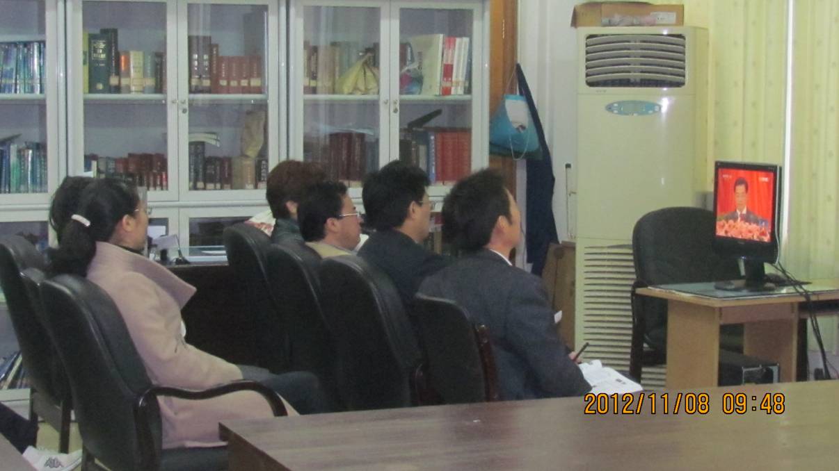 大家围坐在电脑前,认真聆听胡锦涛同志的报告。中共十八大,是我国在全面建设小康社会关键时期和深化改革开放、加快转变经济发展方式攻坚时期召开的一次十分重要的大会,对鼓舞和动员全党全国各族人民继续推进全面建设小康社会进程、加快推进社会主义现代化、坚持和发展中国特色社会主义,具有重大意义。