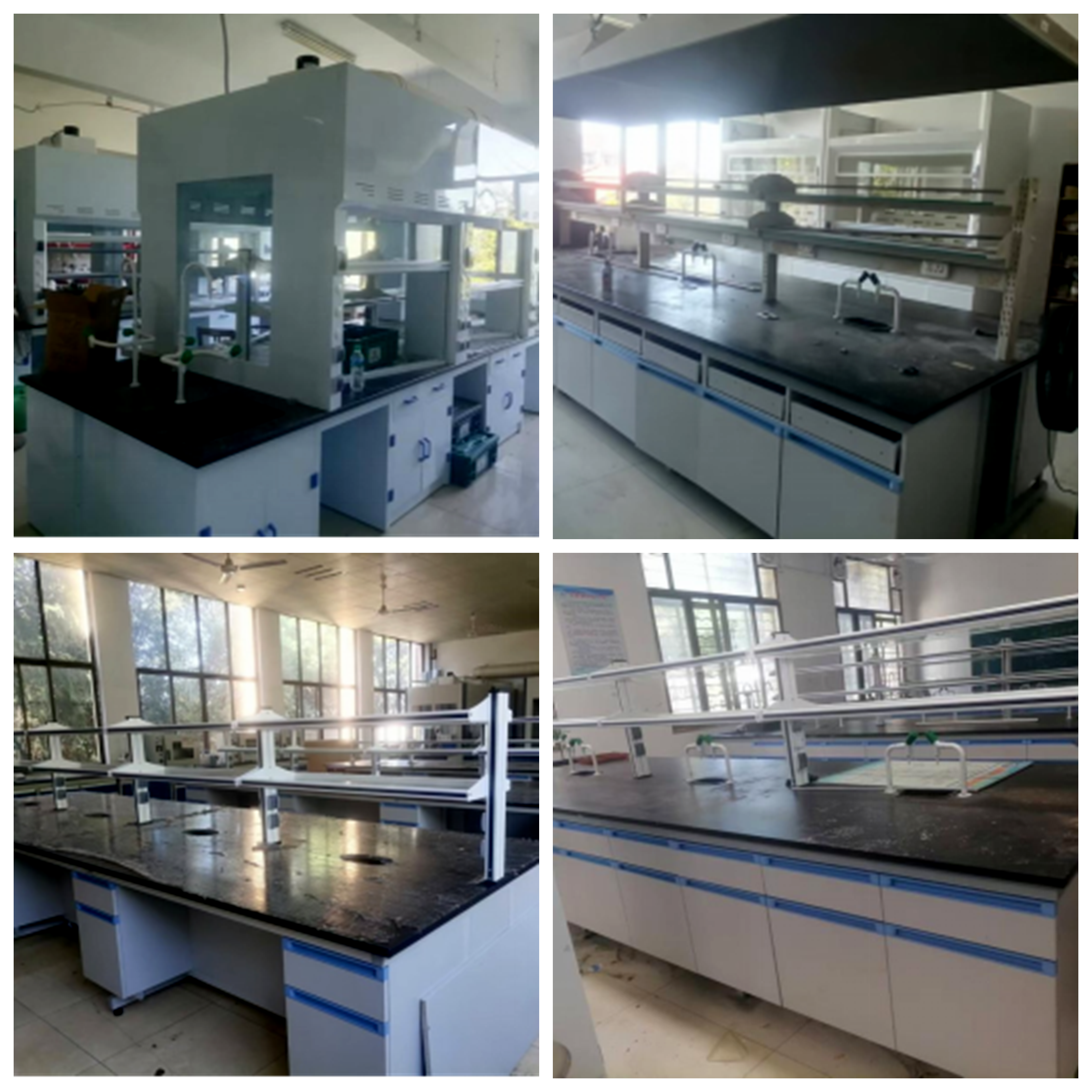 在学校的大力支持下,学院党政积极谋划部署,对全院实验室和致学楼公共区域进行更新和维修,更换了9台通风橱、3套通风系统、25米中央台、12台桌面排风罩、37米边台、30米吊柜、22台中央台柜子、42米试剂架等,安装了52个烟雾报警器,更新了所有安全指示设备,并对所有实验台柜、水电设施、窗户及护栏等进行维修和加固。极大改善了实验条件,确保了师生在实验室安全、高效地开展教学与科研。