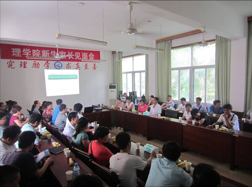 见面会由理学院党委书记彭小波主持。彭小波书记向家长简要介绍我校的招生情况,王义华院长从学院概况、平台建设、人才培养、科研创新四个方面作了介绍,周国平副书记就学生管理方面的工作作了介绍。