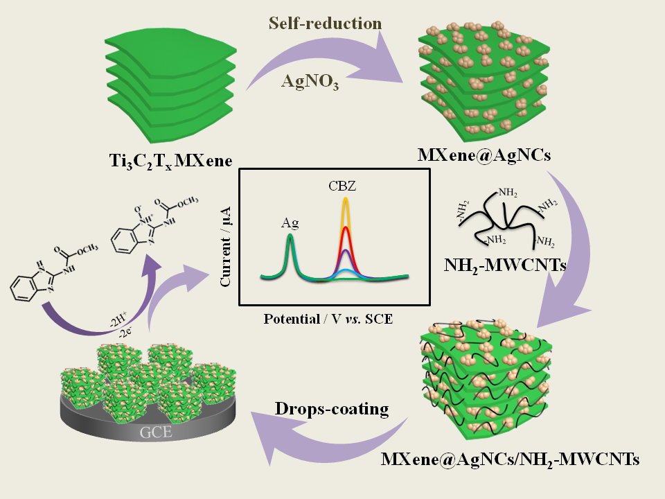 该论文提出了简易的自氧化还原制备异质结构的MXene@Ag复合材料,以其为电极材料构建了一种高灵敏的比率型电化学传感器,实现了对蔬菜样品中噻菌灵农残的快速可靠检测,为食品安全保障提供了一种有效检测手段。
